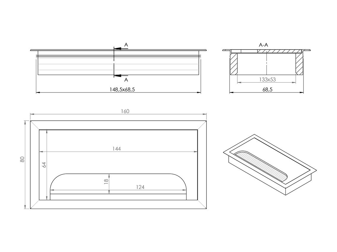Пропуск для кабелю врізний 80/160 алюміній Пропуск для кабелю врізний 80/160 алюміній