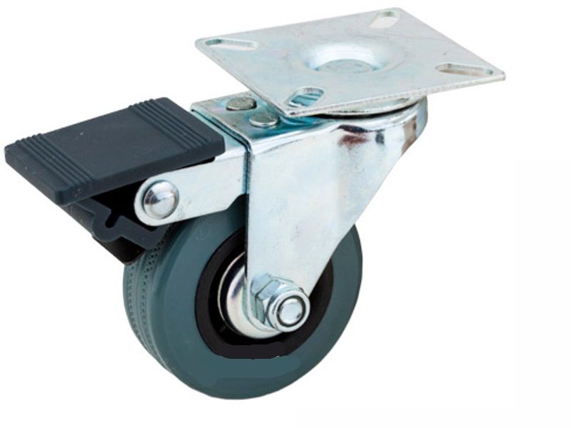 Ролик d-50 мм гумовий з пластиною і гальмом Сірий ДС Ролик d-50 мм гумовий з пластиною і гальмом Сірий ДС